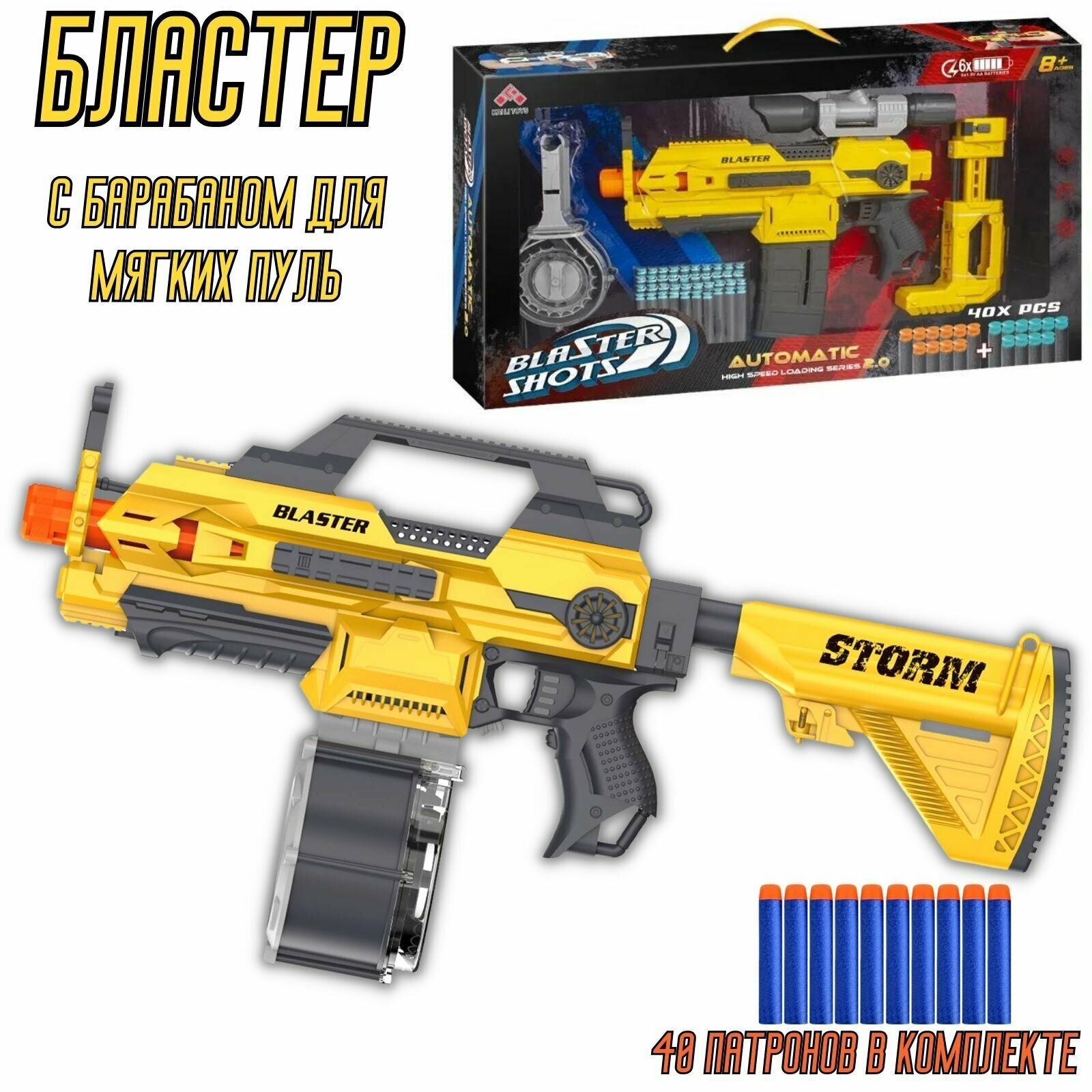 Добро пожаловать в мир приключений с новым бластером "мега" с барабаном для мягких пуль! Этот бластер обеспечивает уникальную комбинацию мощности и скорости, которая наверняка поразит вашего соперника.