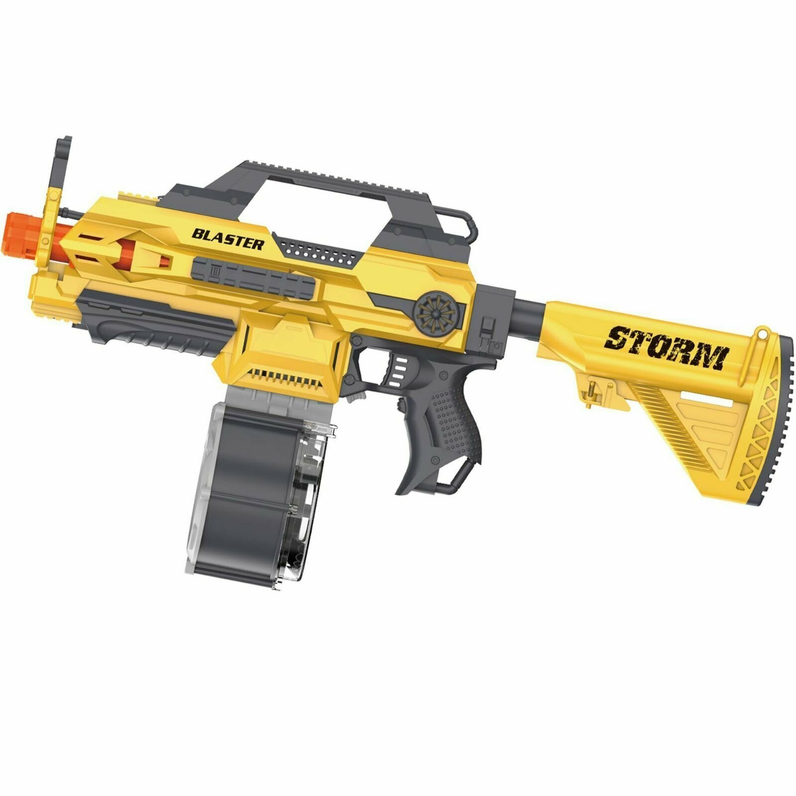 Бластер "мега" оснащен большим барабаном для мягких пуль, который позволяет перезаряжать оружие во время игры без необходимости прерывать битву. Барабан имеет высокую вместимость и легко заменяется при необходимости.