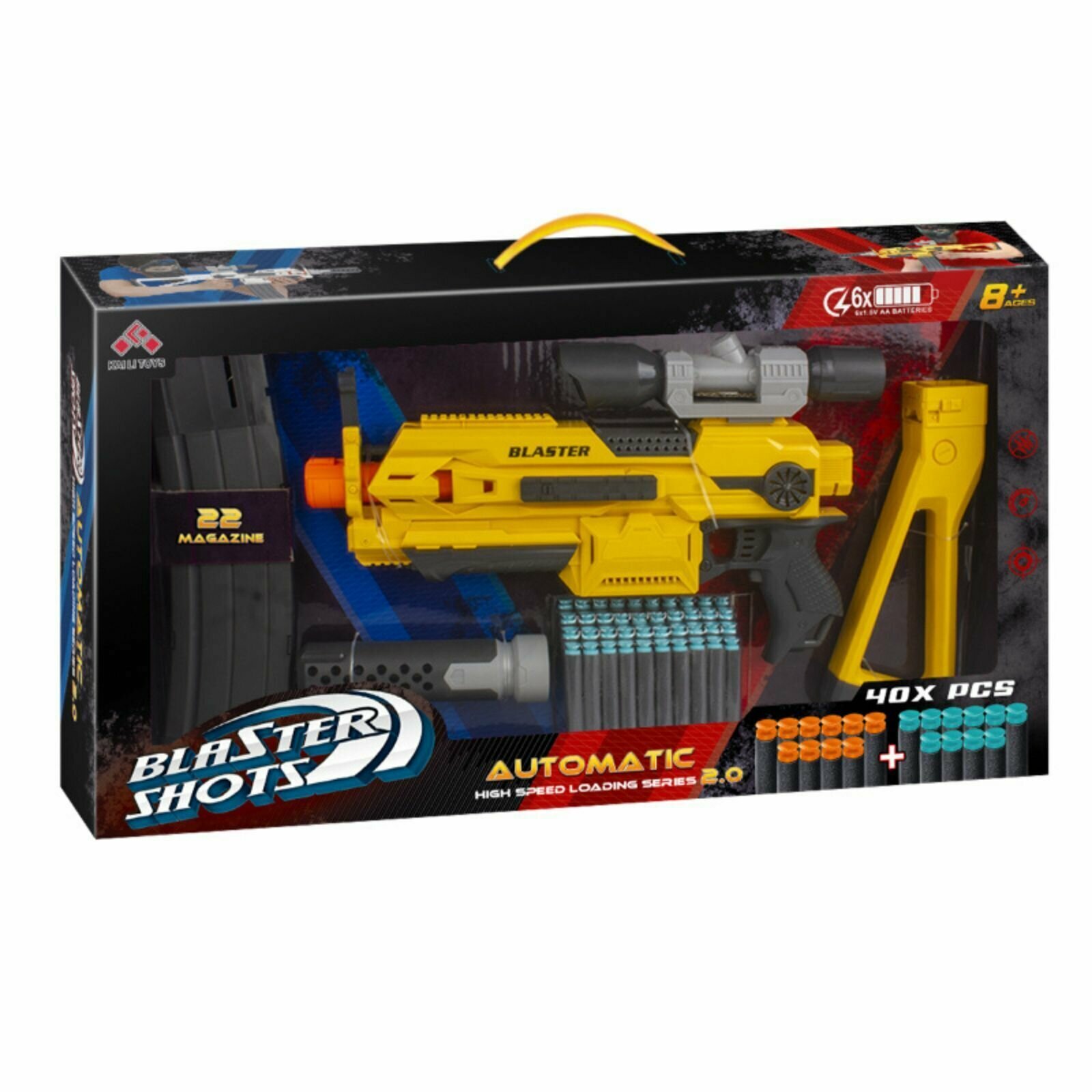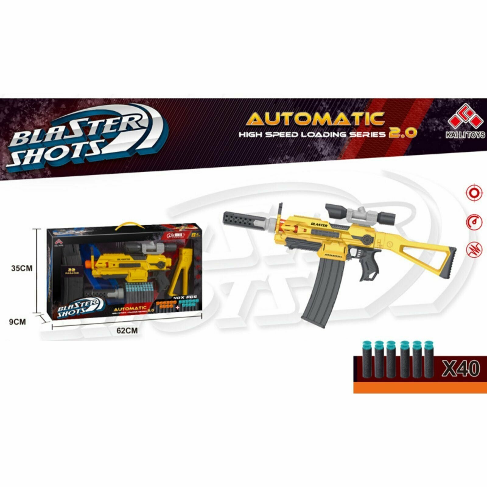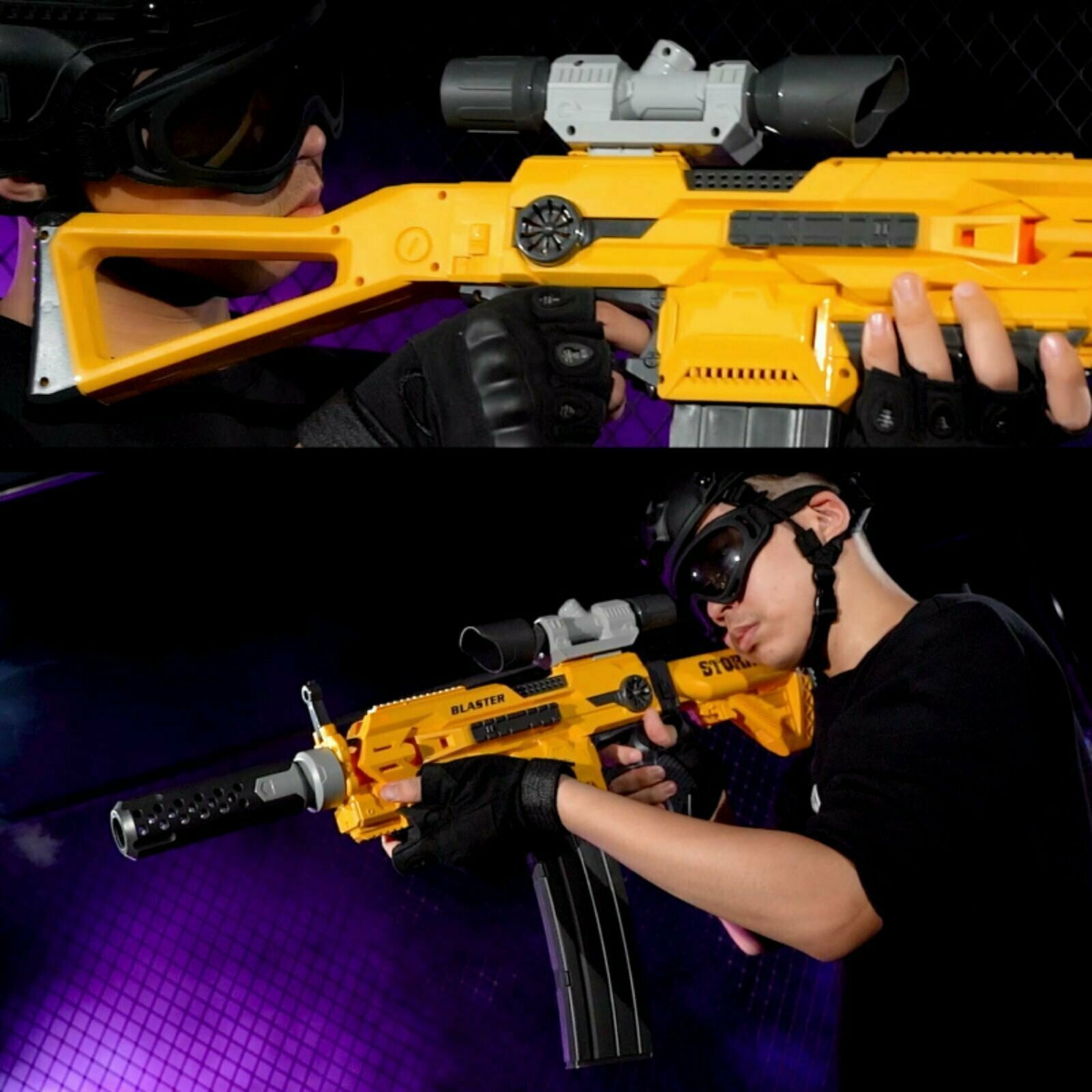 Наслаждайтесь захватывающей игрой со своим новым бластером "АК-47" с прицелом и дульным тормозом и станьте настоящим легендарным бойцом!