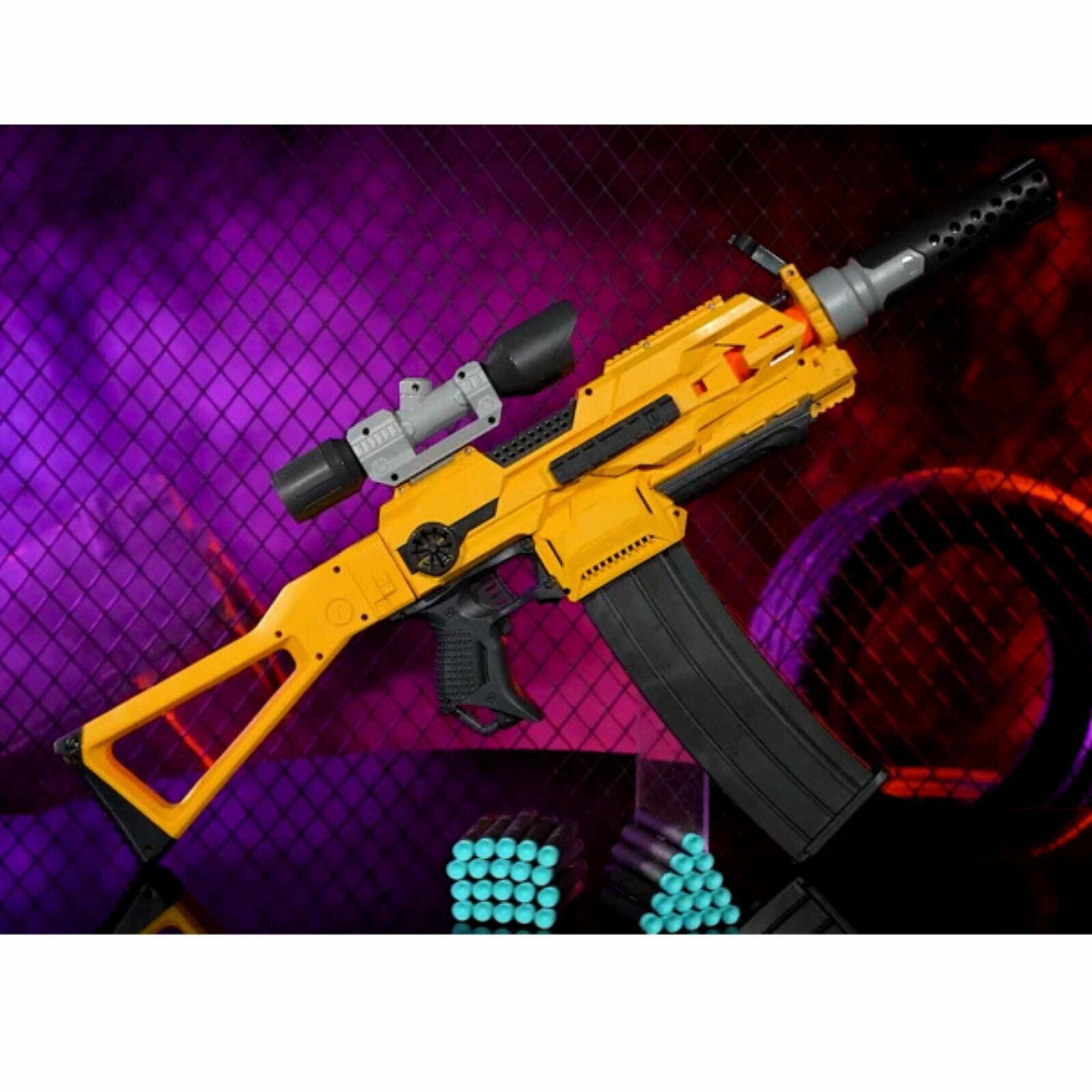 Представляем вам уникальный бластер "АК-47" с прицелом и дульным тормозом, который обеспечивает высокую мощность и точность во время игры. Оружие является прекрасным выбором для опытных игроков, которые ищут новые вызовы.