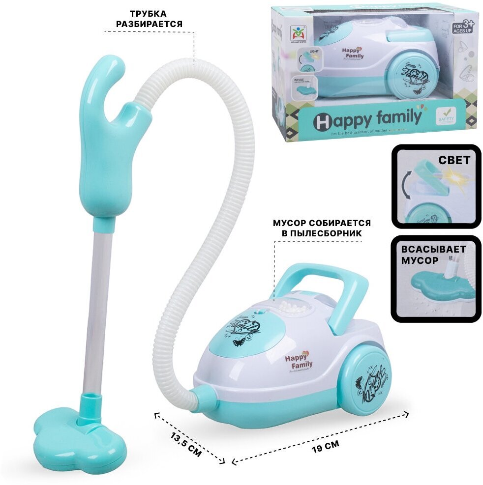 Обрадуйте маленькую хозяйку игрушечным пылесосом. С помощью этого реалистичного пылесоса ребенок узнает для чего он предназначен, получит представление как им пользоваться. При нажатии кнопки ON/OFF на пылесосе загорается подсветка, воспроизводится шум, имитирующий работу пылесоса. Детский пылесос может втягивать небольшие шарики из пенопласта, входящие в комплект набора, почти как настоящий! Для того, чтобы извлечь шарики из пылесоса, которые он втянул, необходимо осторожно открыть крышку на верхней части корпуса пылесоса. Пылесос оснащен удобной ручкой для переноса. Игрушка работает от 3-х батареек типа АА на 1,5 V (не входят в комплект). Размеры пылесоса без шланга ДШВ: 19х13,5х11 см.