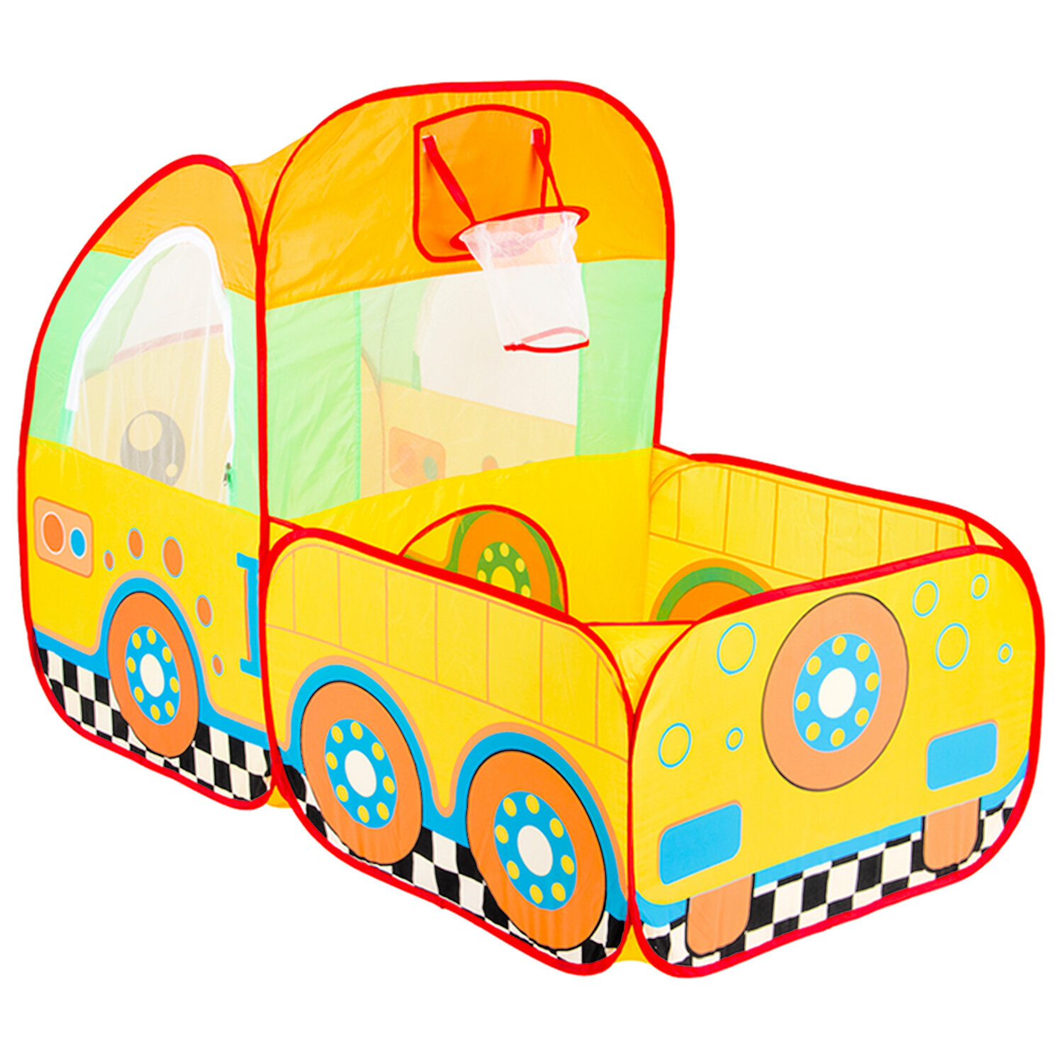 Яркая палатка в виде машинки с прицепом станет замечательным игровым домиком ребенку. В ней можно играть самостоятельно и с друзьями, дома и на свежем воздухе. Гибкий металлический каркас позволяет без усилий разбирать и собирать палатку. Детский домик имеет небольшой вес и его удобно брать с собой на дачу или пикник. Можно использовать как сухой бассейн. В комплекте 5 шариков.