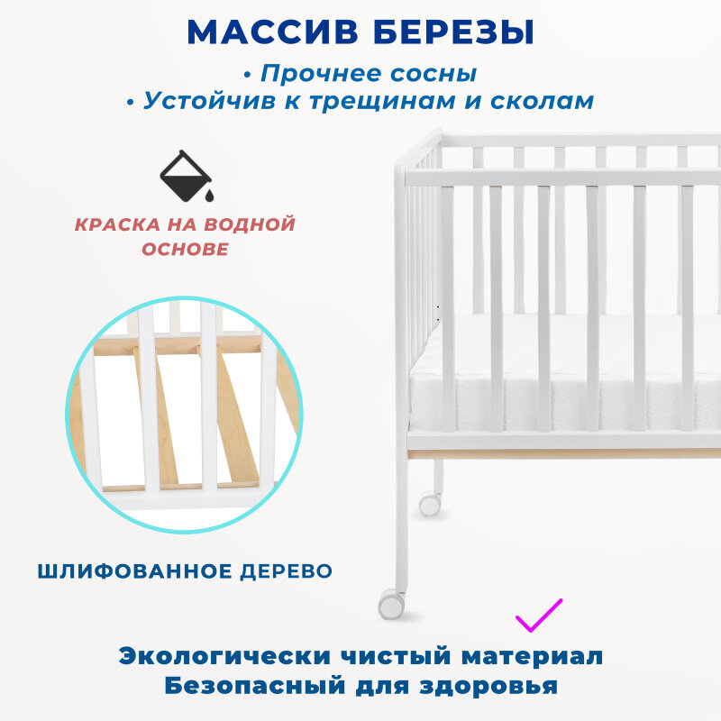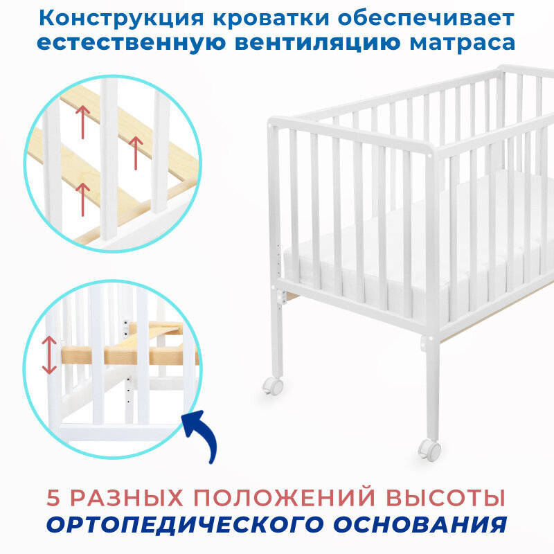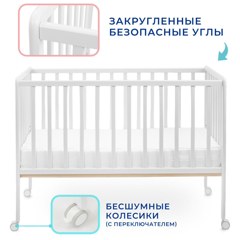 Кроватка Babyroom Мишка оснащена колесами, что обеспечивает легкость перемещения кроватки по комнате. Это особенно удобно, если вы хотите переставить кроватку в другое место или просто сменить обстановку.