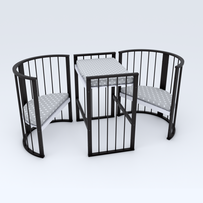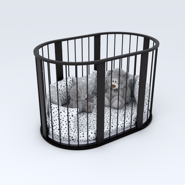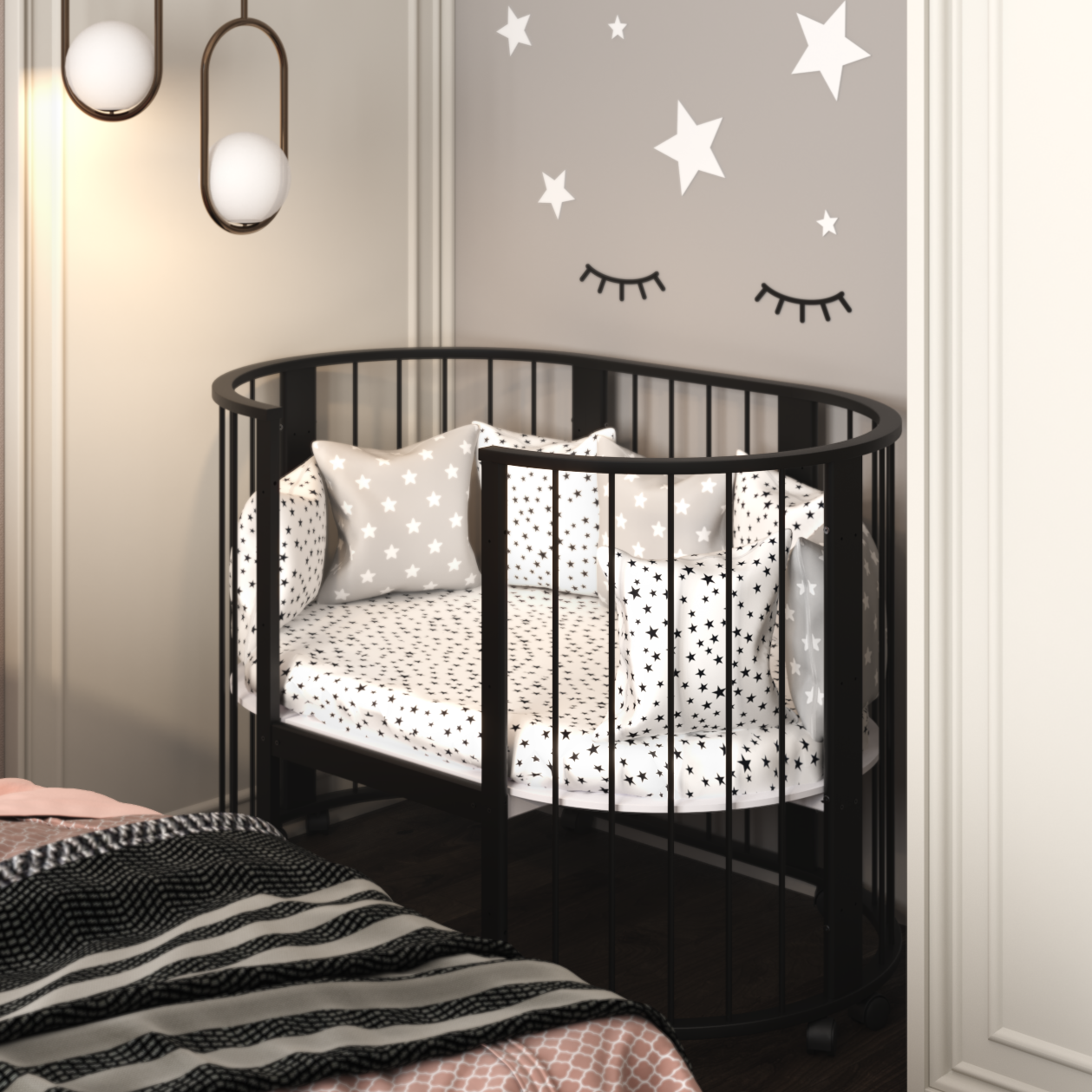 Регулируемый уровень дна поможет маме удобно укладывать малютку спать (в верхнем положении) и безопасно чувствовать себя ребенку постарше, защищенному от самовольного выхода из места своего отдыха, уютно играя, как в детском манеже (на нижнем уровне). При этом научиться вставать и ходить ребенку будет более удобно, придерживаясь за прутики бортиков.