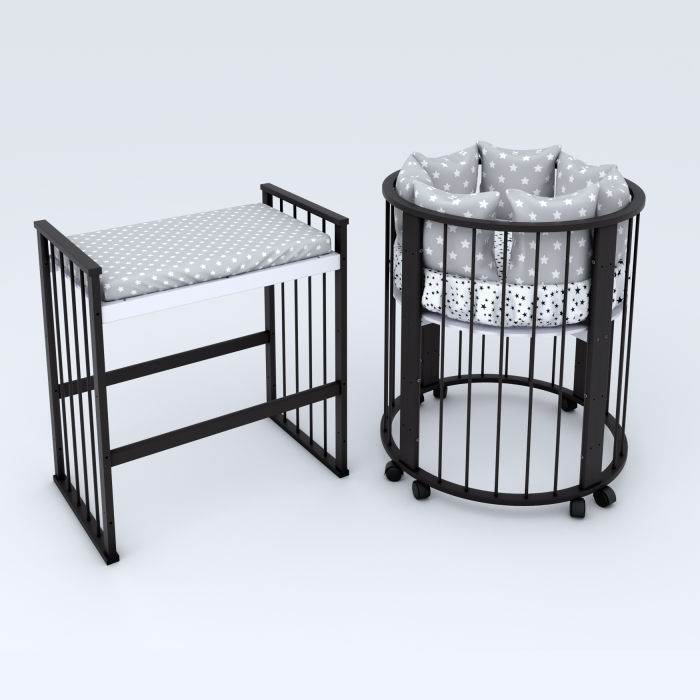Достаточно всего лишь одного взгляда для того, чтобы понять, что круглая кроватка ЗАЙКА – оригинальная, добротная мебель наивысшего качества. Данная модель заинтересует в первую очередь тех пап и мам, которые нацелены на приобретение детской кроватки, изготовленной с использованием только натуральных материалов, обладающей расширенной функциональностью, и при том рассчитывают на небольшую стоимость. Ведь при всех преимуществах, кроватка имеет вполне бюджетную цену, а благодаря продуманной конструкции прослужит Вам долгие годы, сначала как маленькая колыбелька для новорожденного с удобным пеленальным столиком, а в дальнейшем как традиционная детская кроватка.
