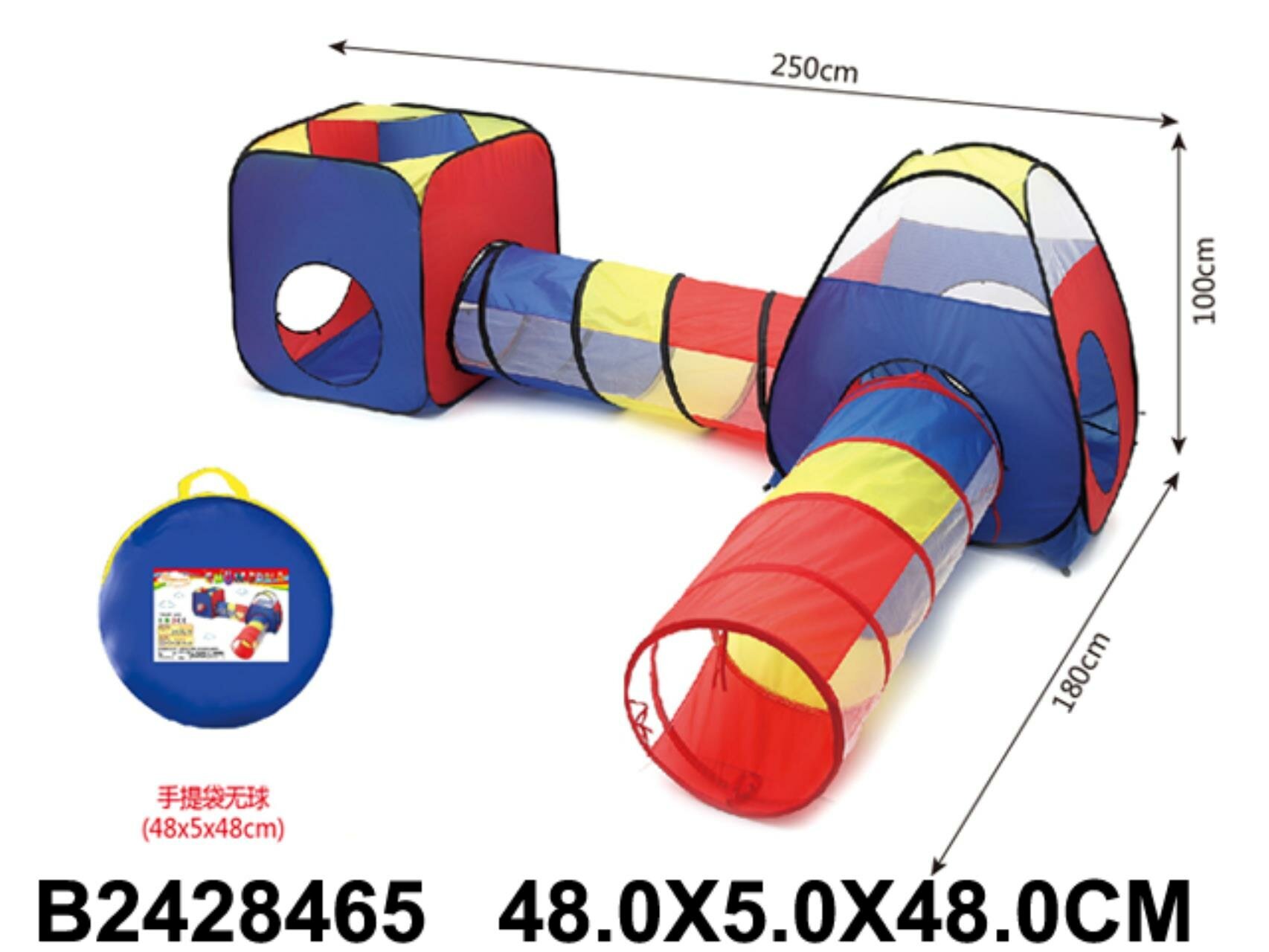 Игровой домик-палатка "Игровой центр" с двумя туннелями, размер в собранном виде: 250x100x180 см, в сумочке 48x5x48 см