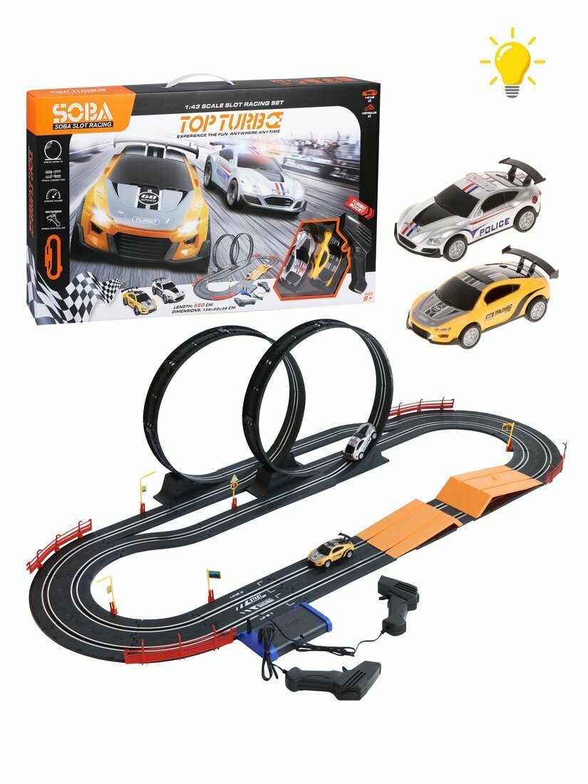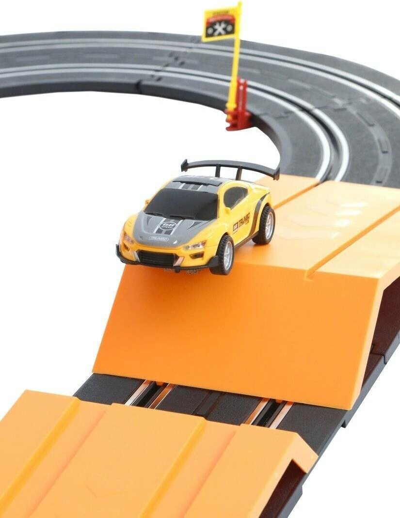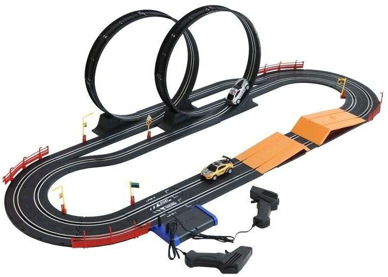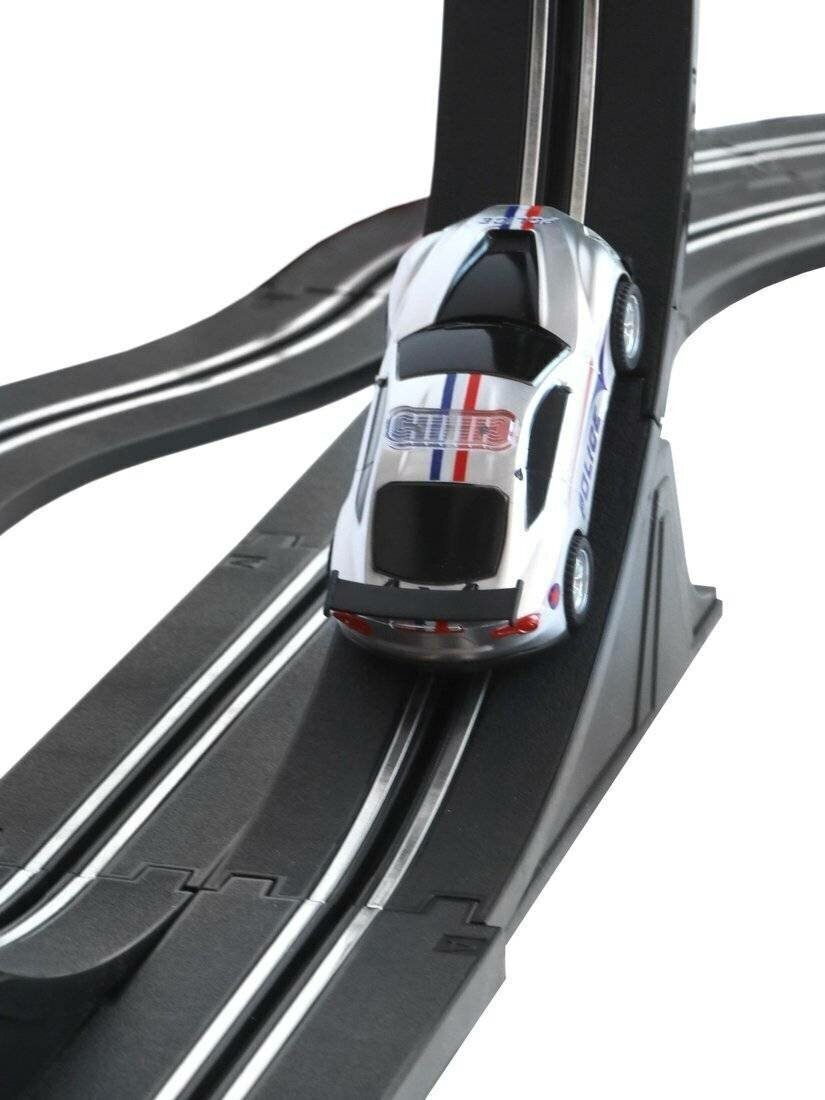 Игровой набор «Автотрек» подарит много часов увлекательной игры! В комплект входят 54 детали для сборки будущей автодороги и 2 машинки. В процессе сборки трека ребёнок будет развивать мелкую моторику рук, способность концентрировать внимание и навыки моделирования. Играть с автотреком очень весело и интересно! Здесь есть и опасные повороты, и трамплины, и даже две «петли»! Для игры потребуются 8 батареек типа АА (не входят в комплект). Управление машинками осуществляется с помощью пультов (входят в комплект): машинки устанавливаются на трек и буквально примагничиваются. Перед тем как поместить машинку на трек, «расправьте» контактные линии, расположенные на дне машин. В машинках предусмотрены световые эффекты. Размер собранной дороги (ДxШxВ) составляет 136х52х36 см (длина пути – 560 см). Ориентировочный размер машин (ДxШxВ): 10х5х3,5см. Изготовлено из пластмассы с элементами металла.