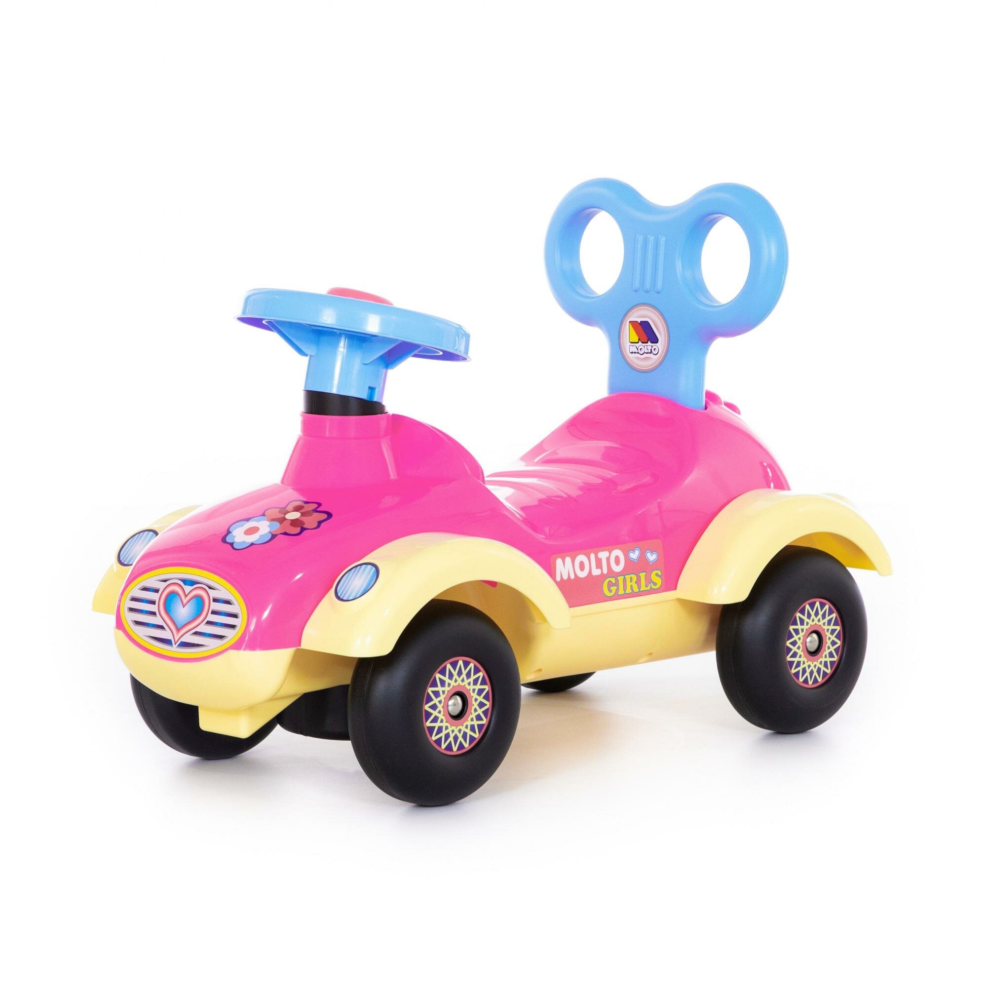 "Сабрина" - розовый стильный автомобиль-каталка. Девочка садится на каталку и, держась за руль, отталкивается ножками. Широкая посадка и такое катание способствуют правильному развитию разных групп мышц, общей координации движений. Стоя за автомобилем и держась за спинку каталки, малышка может толкать ее перед собой, тем самым совершенствовать навыки ходьбы.