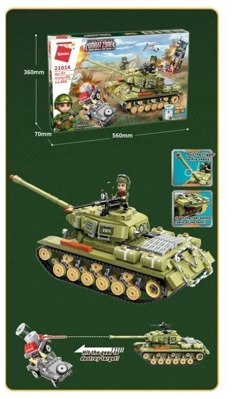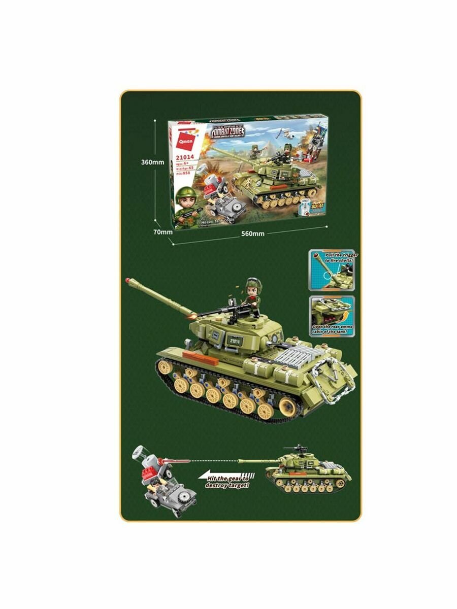 Конструктор танк QMAN приведет в восторг каждого ребенка. Множество элементов, игрушка на долгие часы. Инструкция, где подробно показаны все шаги по сборке. Подвижные детали, можно придумать и разыграть массу веселых сценок. Конструктор выполнен в оригинальном дизайне, имеет реалистичную конструкцию. Детализированная модель, качественная проработка каждого элемента. Прочные, долговечные и безопасные материалы. Надежное крепление деталей, элементы легко собираются и разбираются. Типовые детали конструктора совместимы с наборами Ausini, Brick, Sluban, Cogo, Lego, Peizhi, Jie Star и Unicon. Объединяйте и фантазируйте. После сборки конструктор можно поставить на полку. Красивая коробка - набор станет шикарным подарком для всех маленьких любителей конструторов на Новый год и День рождения. 858 деталей. Высококачественная пластмасса. Размеры коробки 56х7х36 см.