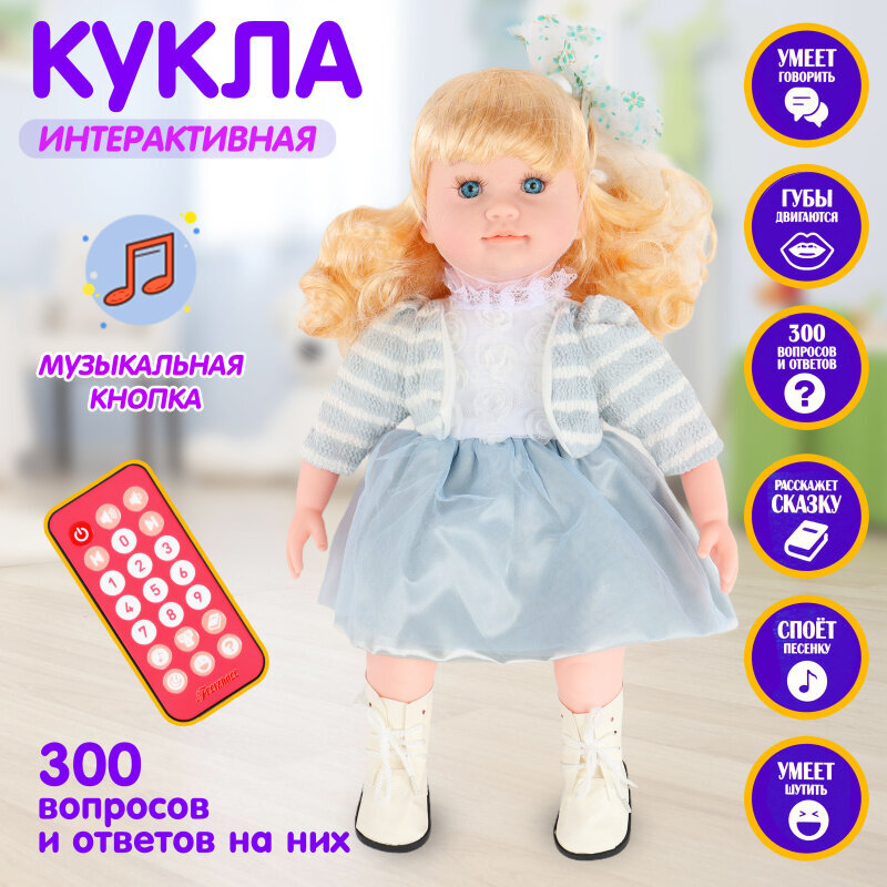 • Кукла знает ответы на 300 вопросов.
