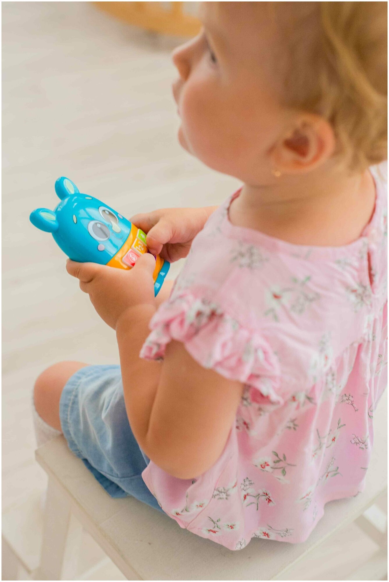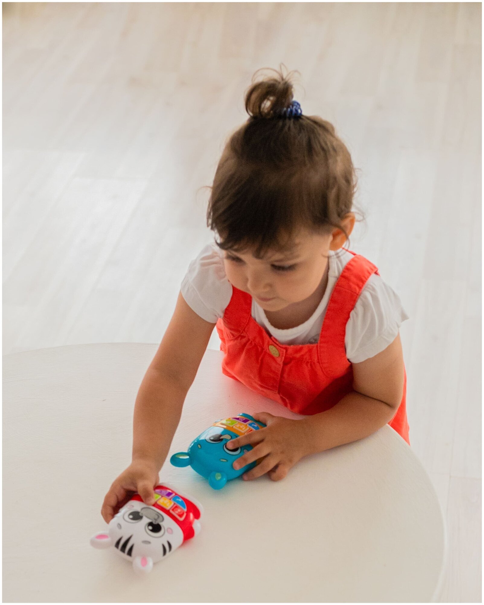 Размер упаковки: 15,2*4,2*21 см Размеры изделия: 12,2*3,8*8,6 см Вес: 120 г Функционал: музыкальная игрушка, обучающие функции, световые эффекты Упаковка: картонная коробка блистерного типа Страна обладатель бренда: Россия Материал: пластик Комплектация: музыкальная игрушка - 1 шт. Возраст ребенка: от 3 лет • ьная яркая музыкальная игрушка с различными функциями - прекрасный малышу. • Она предназначена для активных игр и развития мелкой моторики и координации движений. • Нажимая на разноцветные кнопочки, малыш послушает веселые песенки (Бум-Бум, Алло-алло, Как чудесно жить на свете), танцевальные мелодии и забавные звуки. • Имеются световые эффекты. • Работает от батареек. • Яркая расцветка развлечет малыша и привлечет его внимание. • Игрушка учит пониманию причинно-следственной связи, помогает тренировать моторику и координацию движений, восприятие формы и цвета. • Музыкальная игрушка оборудована кнопками, нажимая на которые можно прослушать мелодии. • Работает от 3-х батареек типа AA (в комплекте демонстрационные). • Игрушка привлекает внимание и способствует развитию тактильного, зрительного и слухового восприятия малыша. • Игрушки сделаны из прочного и безопасного материала.