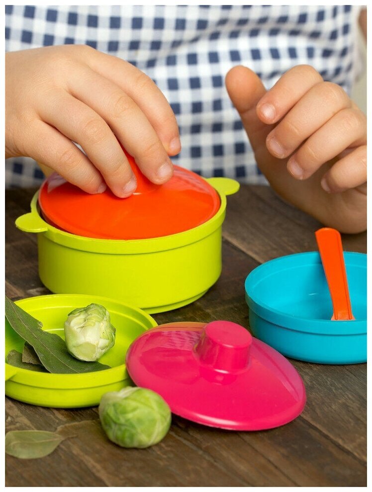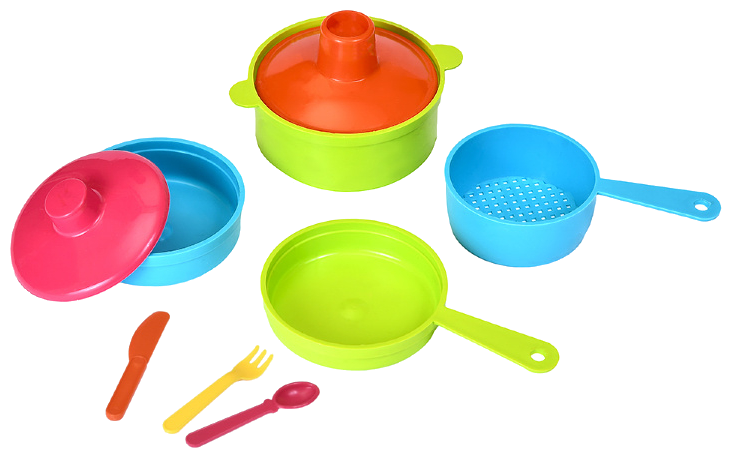 Устроить настоящий "Рыбный день" поможет юному повару этот набор посуды . Яркая и функциональная посудка вдохновит на приготовление необычных и полезных рыбных блюд. Все, что нужно для первых навыков в этой области, входит в набор: кастрюля и сковородка, миска, сито и набор столовых приборов. После такой игры малыши с удовольствием будут помогать маме на настоящей кухне! Благодаря идеально обработанным краям посуды и качественному, а также прочному материалу изготовления, набор полностью безопасен в использовании. Играя с набором, ребенок сможет поближе познакомиться с различными элементами посуды, а также пофантазирует, придумывая увлекательный сюжет, позволяющий их использовать. Возраст: от 3-х лет.