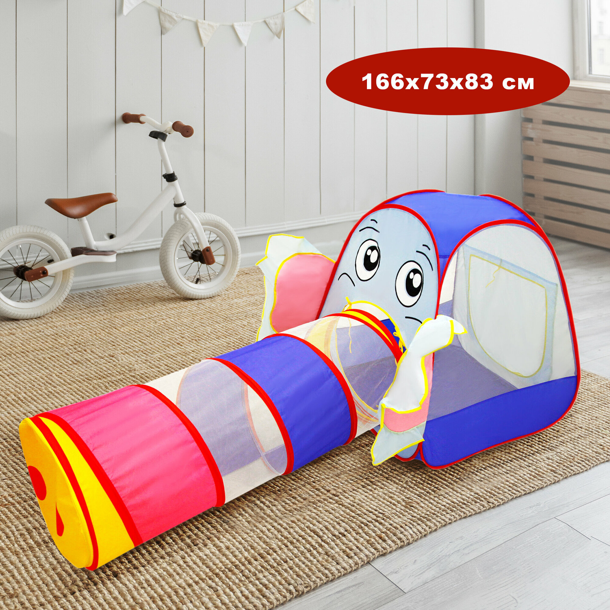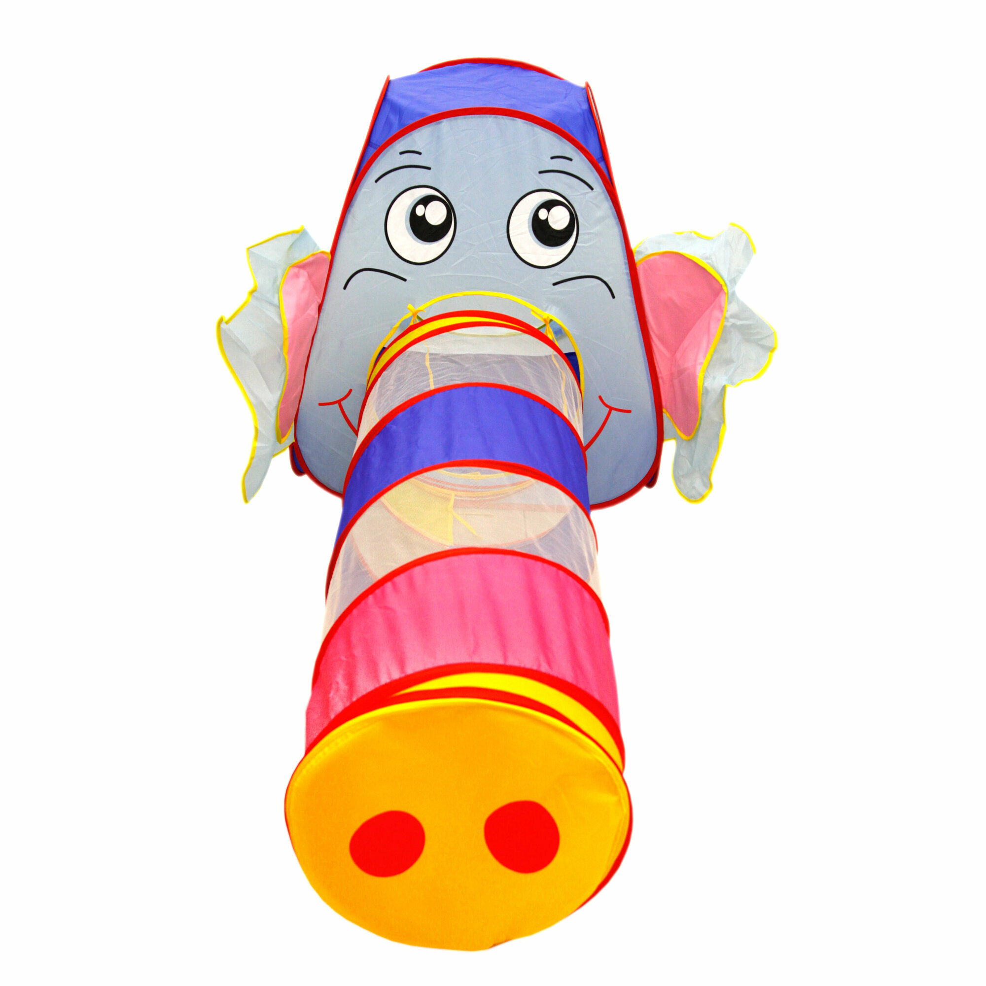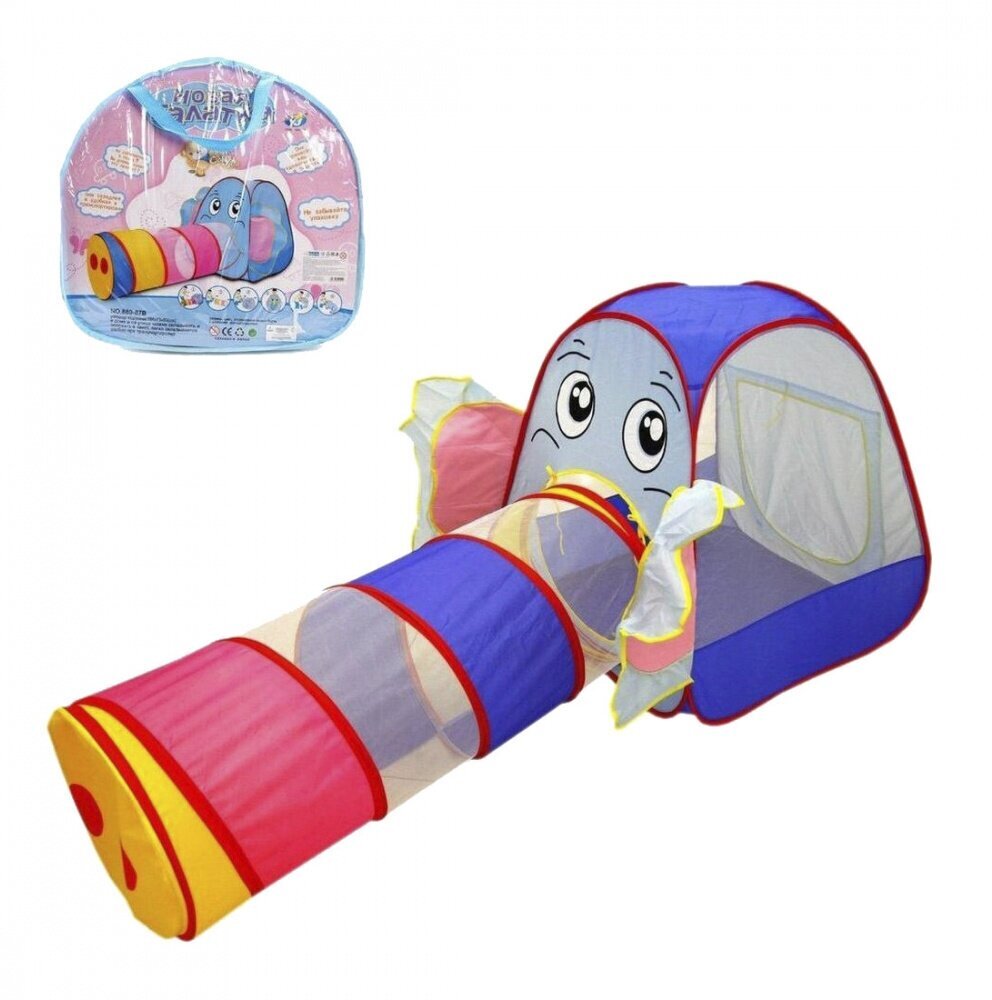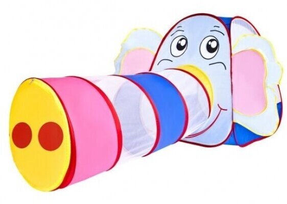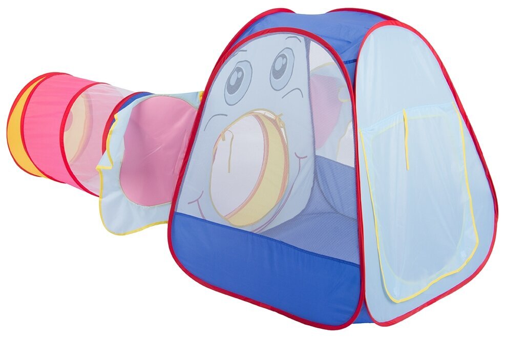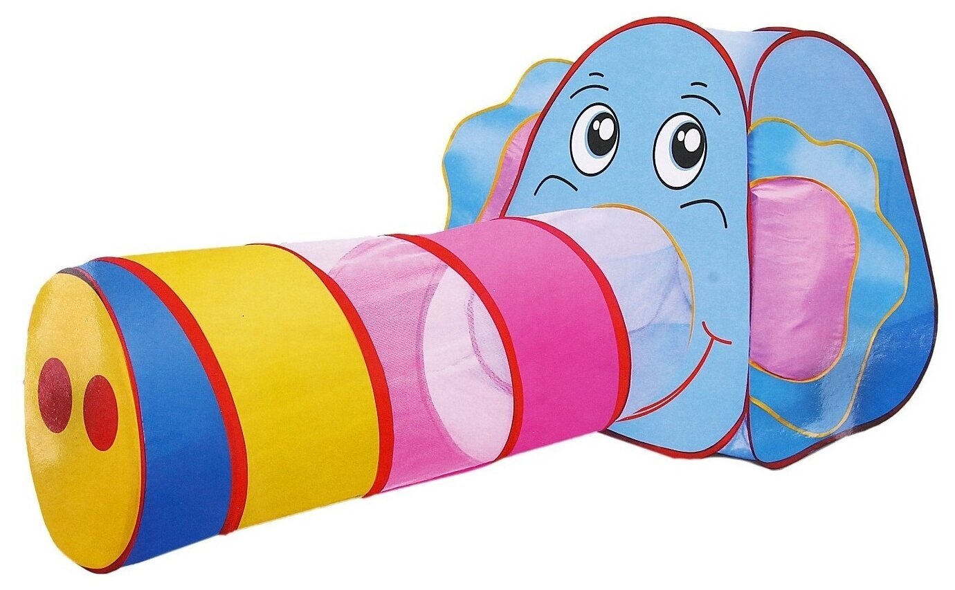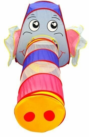 Игровой домик-палатка Слоненок предназначен для детей от 3х лет. Игровая палатка из легкой водонепроницаемой ткани, грязь легко смывается влажной тряпкой. Ткань из безопасного, экологически чистого материала, воздухопроницаемого. У палатки есть тоннель с дверцей. Тоннель можно отстегнуть. В палатке два входа. Окончание туннеля застегивается и расстегивается с помощью молнии. По бокам стенки-сеточки для вентиляции. Хобот также имеет элементы из полупрозрачной сетки. Палатка легко и быстро собирается и, сложенная в сумку в собранном виде, занимает очень мало места. Хобот не отстегивается. 168х73х83см