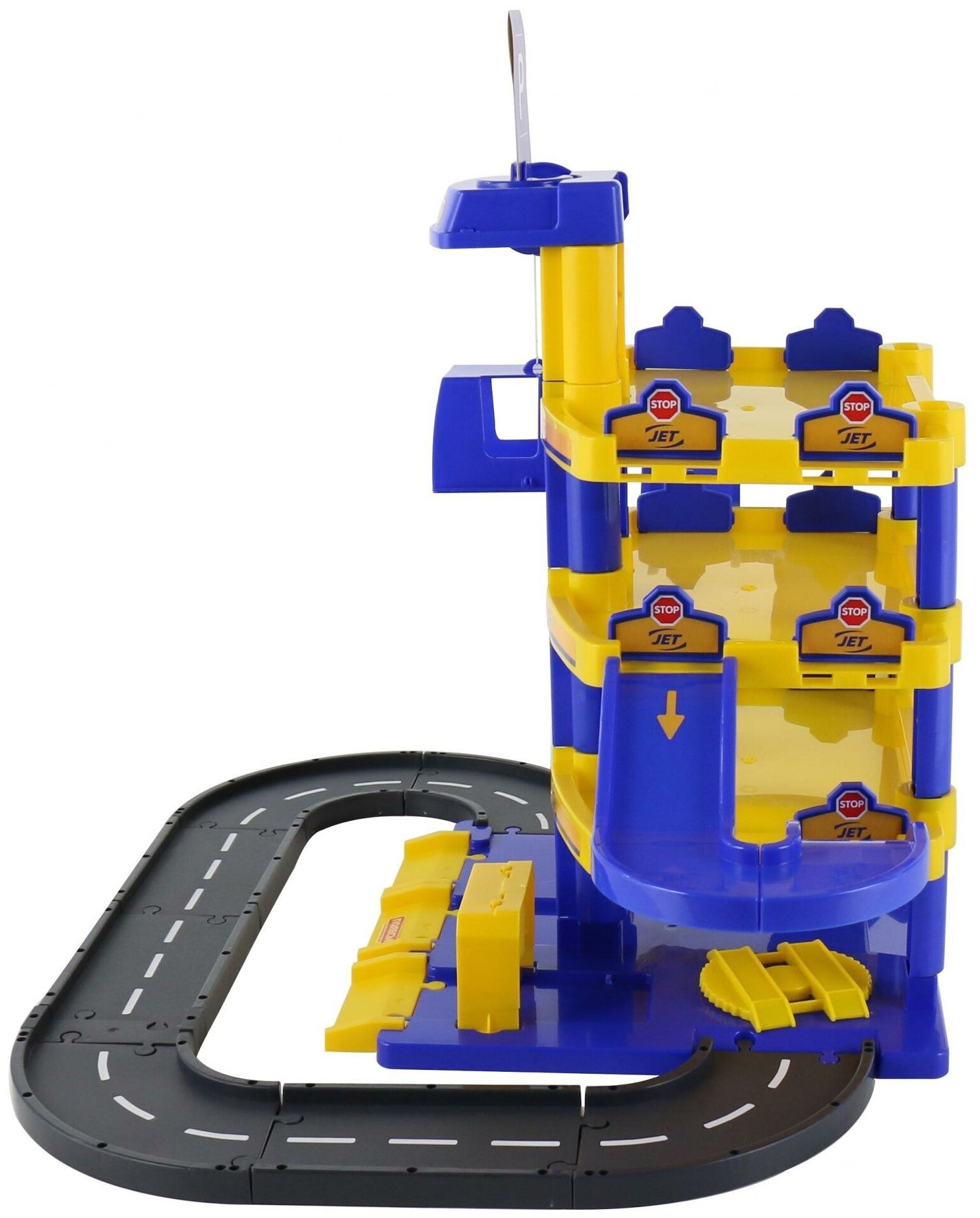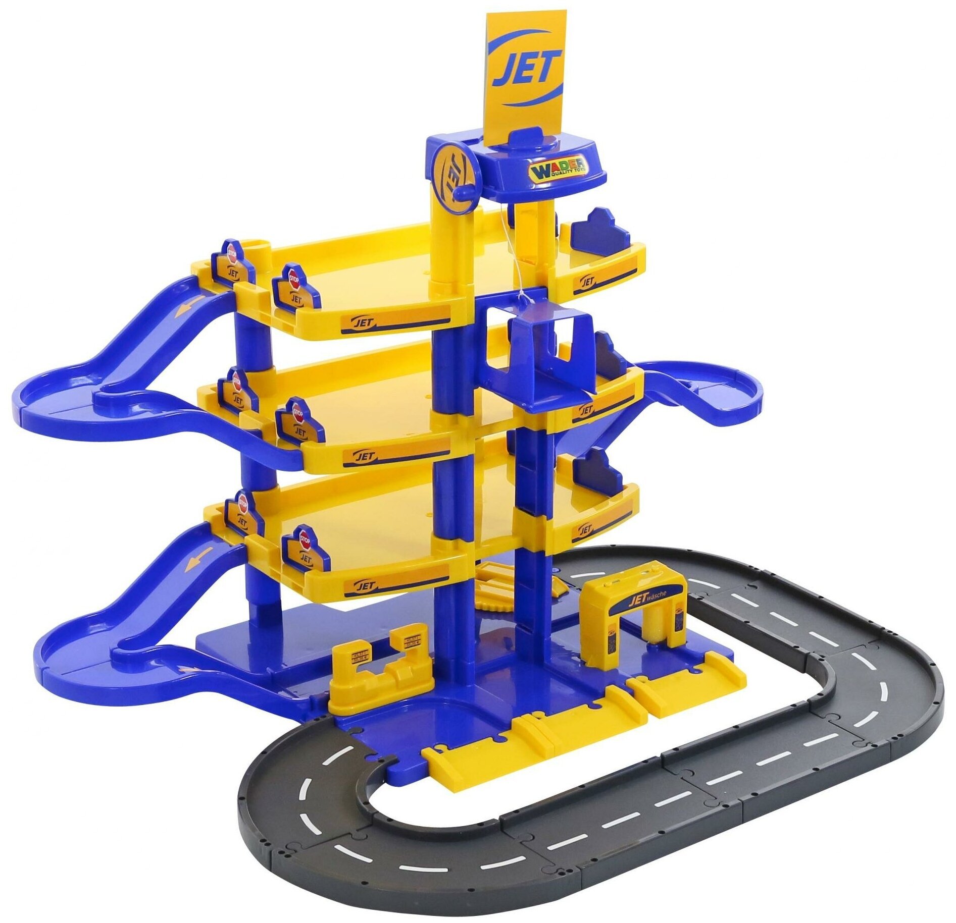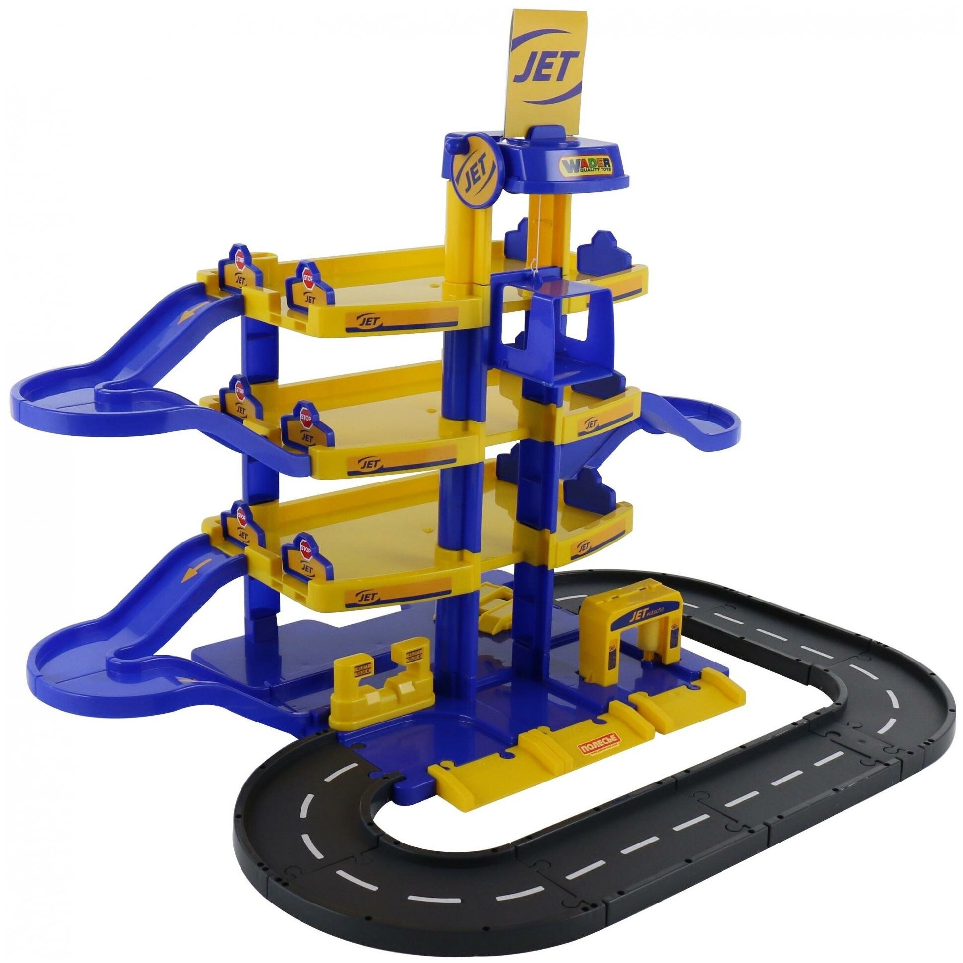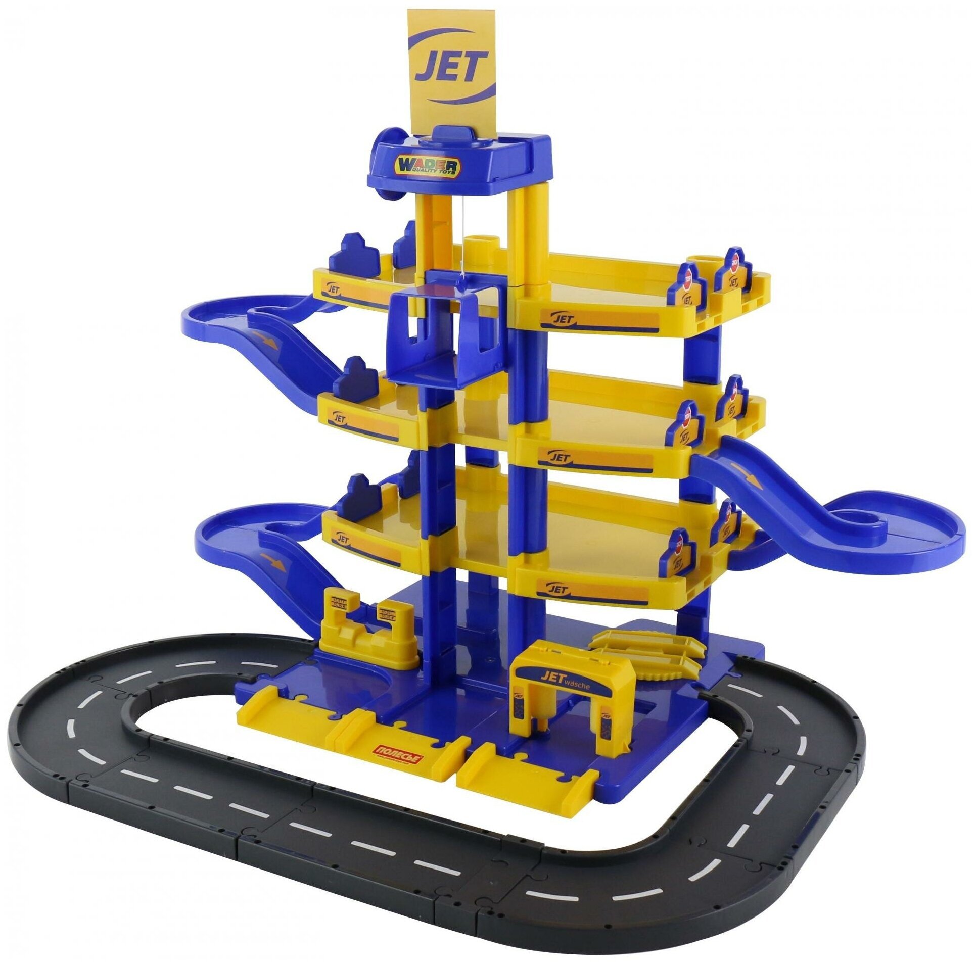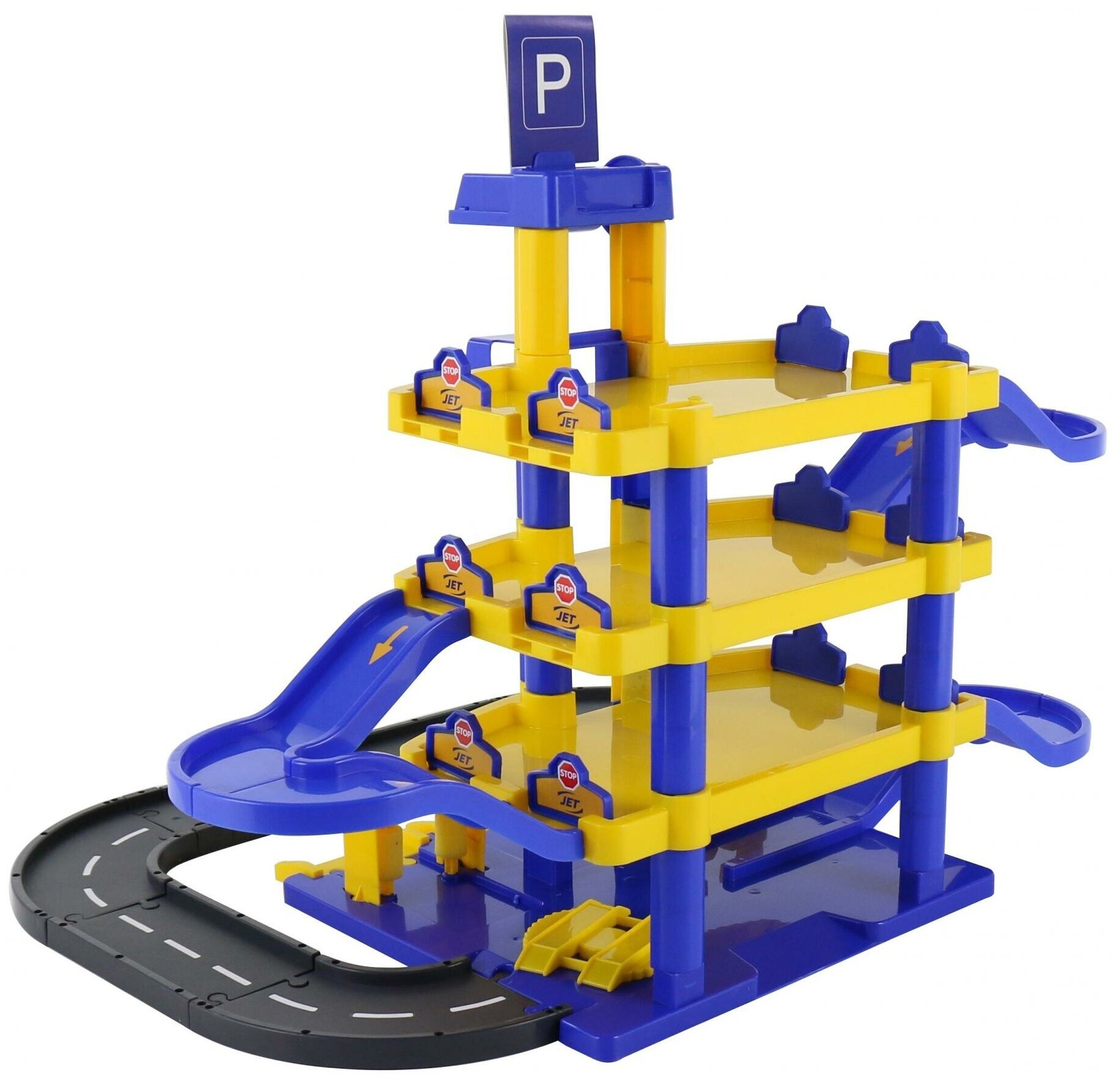 Многоэтажные паркинги – будущее каждого современного мегаполиса! Огромный 4-уровневая игровая парковка JET (WADER) похожа на настоящий город в городе: кроме вместительной автостоянки, на его территории есть мойка, заправочная станция и автосервис. Из чего состоит игровая парковка паркинг и дорога в разобранном виде (все детали сделаны из прочной гладкой пластмассы синего, желтого и серого цветов); наклейки для декора; инструкция по сборке. Возможности игровой парковки На двух просторных парковочных площадках помещается очень много транспорта! Поэтому ребенок использует любые машинки, подходящие по размеру, которые только есть среди его игрушек. Поднимает их на верхние этажи с помощью специального лифта, который приводится в действие настоящей лебедкой. А съезжают машины по спиральному спуску, на который попадают с любого этажа. На первом ярусе паркинга находится автосервис. Там есть мойка с вращающимися поролоновыми валиками, расположенными по бокам. Валики можно намочить, чтобы все было «совсем как настоящее». Тут же расположены заправка и эстакада, на которую можно загнать машину для ремонта. А приезжают машины на парковку с кольцевой дороги. Что развивает детская игровая парковка С ней ваш юный автолюбитель придумывает много развеселых сюжетно-ролевых игр. Это увлекательное занятие прекрасно развивает фантазию, речь, учит ребенка общаться и вести себя в обществе. Игровая парковка – отличный набор для мальчика. Откройте ему мир машин с детским паркингом! Этот товар также ищут как: детский/игрушечный/игровой гараж, детская/игрушечная парковка, детский/игрушечный/игровой паркинг Параметры товара: упаковка – картонная коробка 590x165x395 мм, вес 2260 г